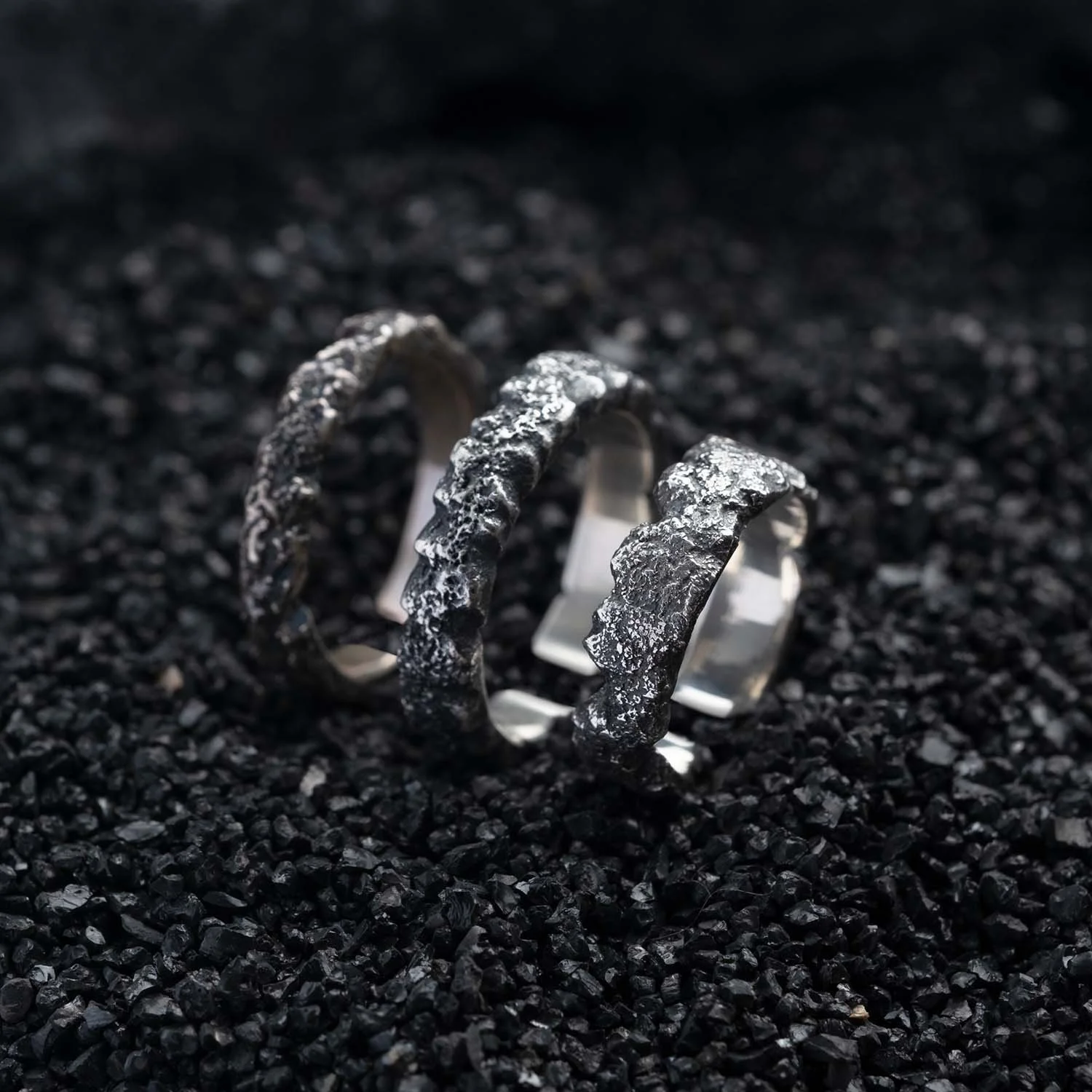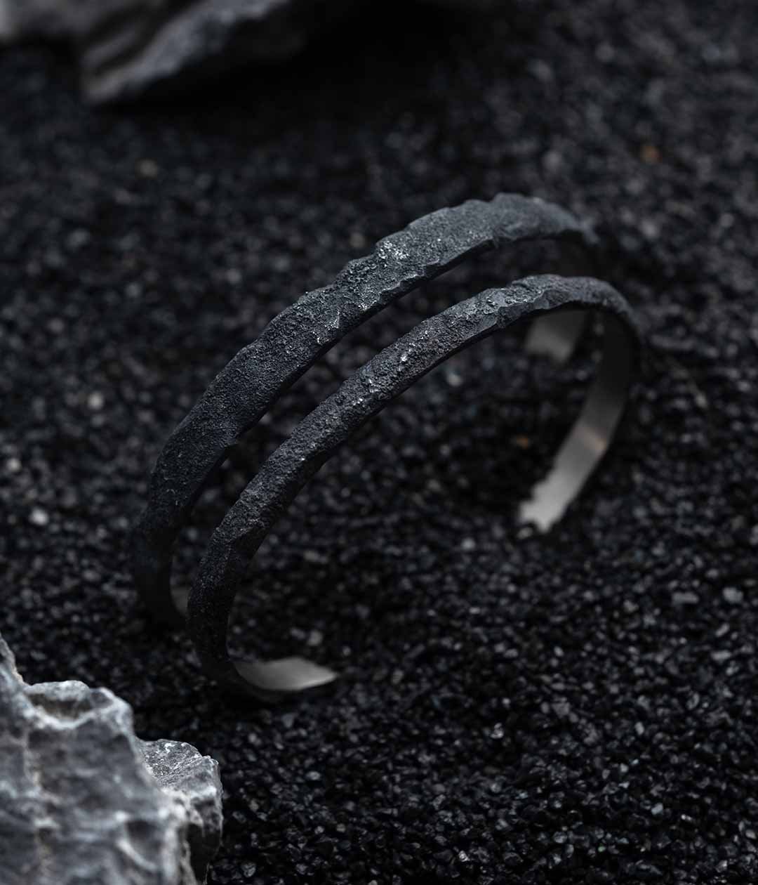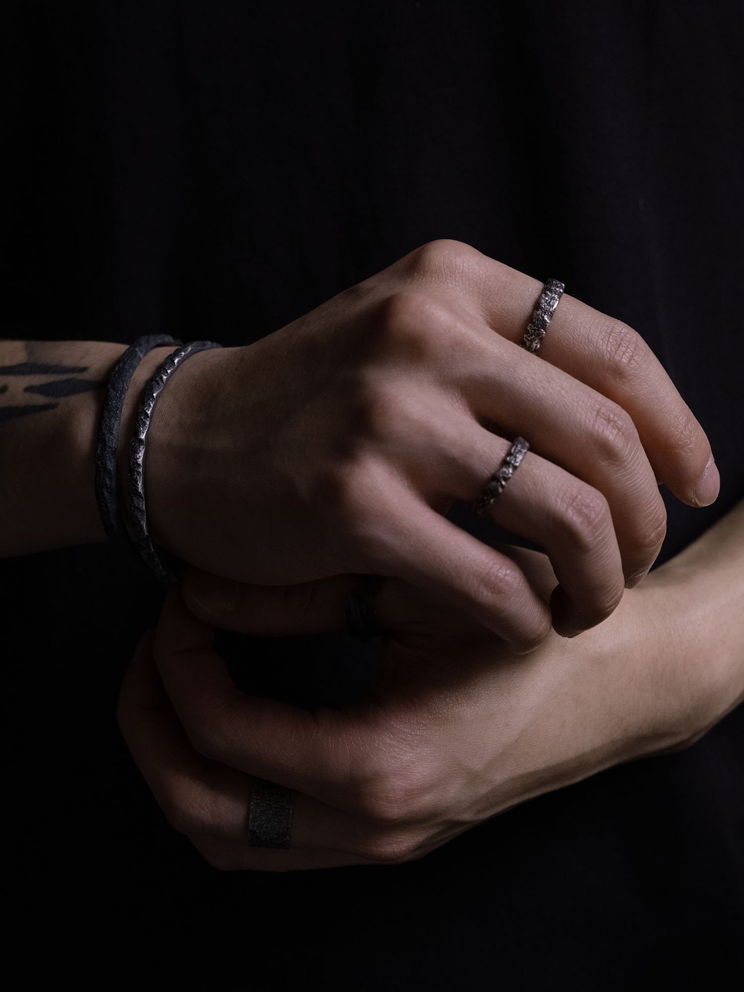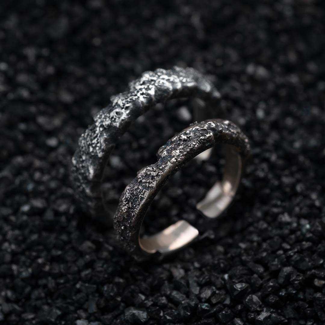 Starting from a strip of gold or silver raw material, cutting, soldering, grinding, hammering texture, lettering, shaping, and lighting by yourself