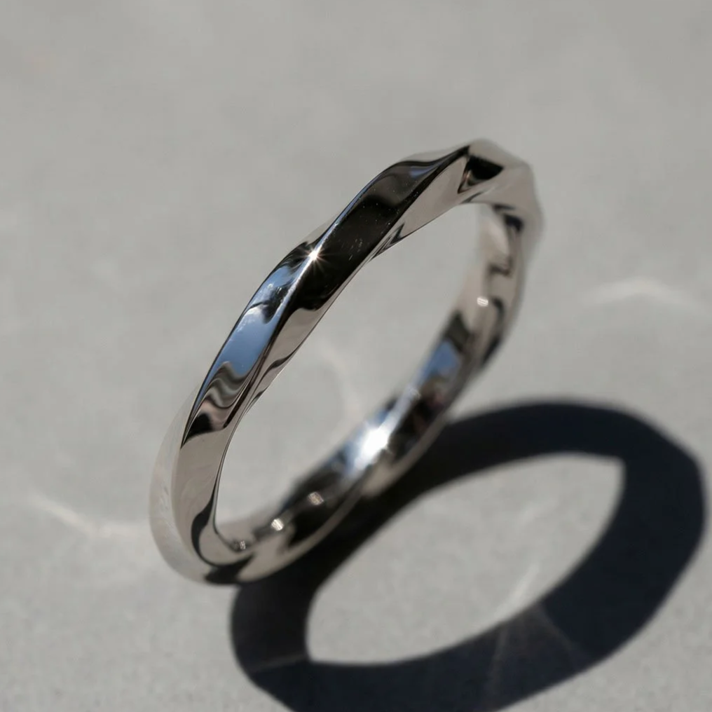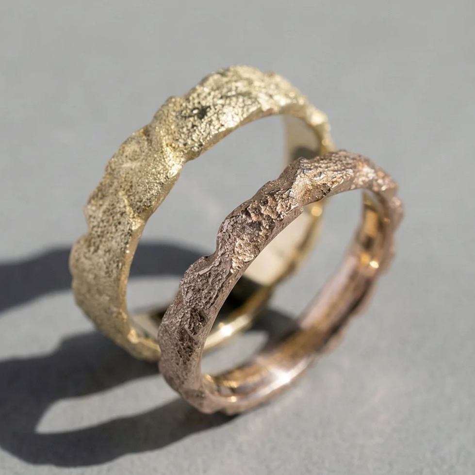 The two rings can be in different thickness, texture, twisting and finishing.
